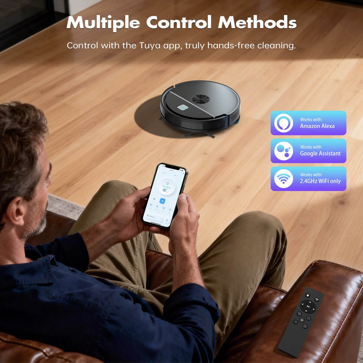 The clever controls are a great feature. I can use the app to control it, establish cleaning schedules, and even control it from a distance. Voice instructions work perfectly, which is great when I have my hands busy. The robot moves around furniture and other things without getting stuck.